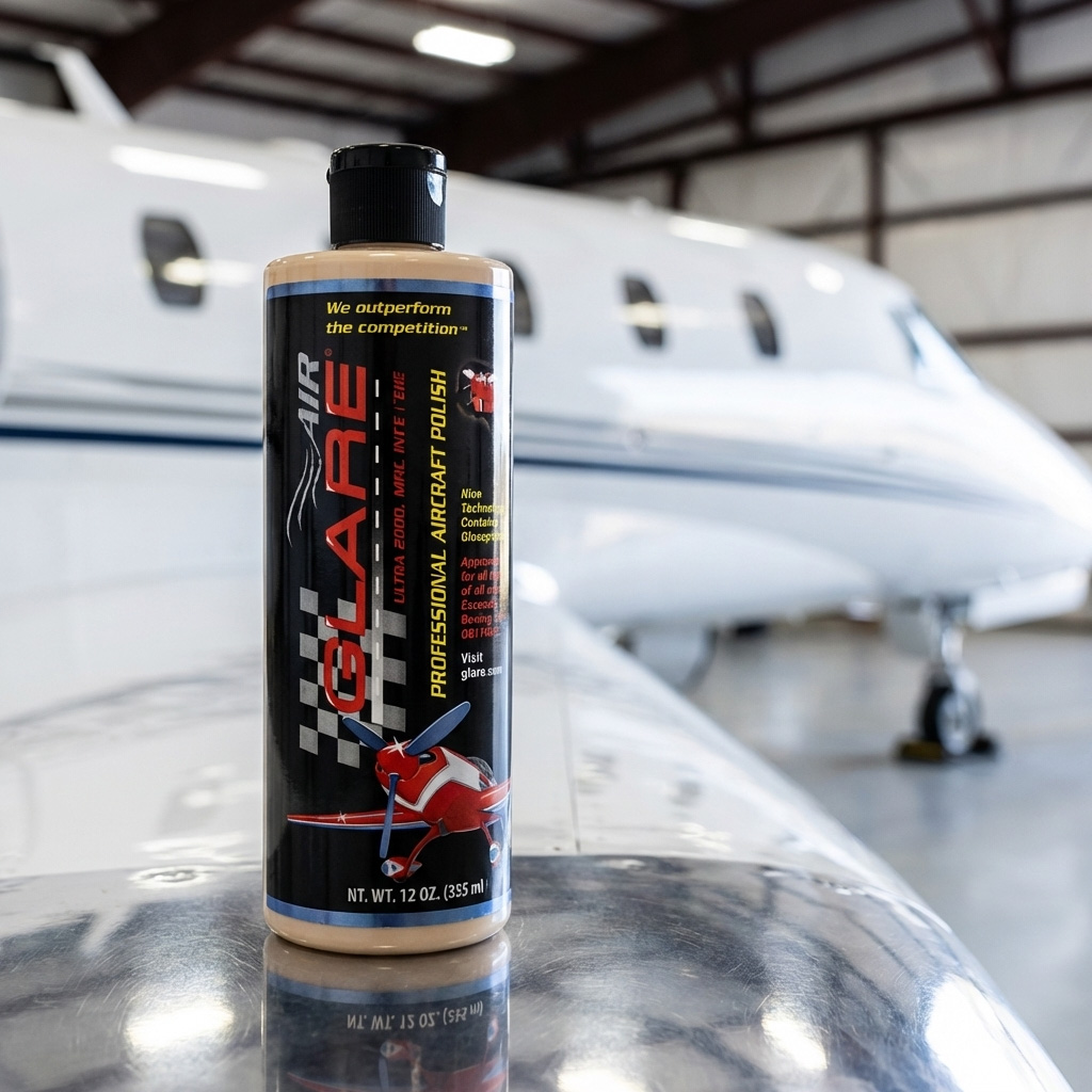 AIR-GLARE PROFESSIONAL AIRCRAFT POLISH is the most technologically advanced aircraft paint polish/sealant ever developed. This is the finest product for your airplane, jet, or helicopter. AIR-GLARE will protect your expensive aircraft paint from UV ray discoloration, engine exhaust, air oxidation, and degradation which is caused by air molecules constantly bombarding the exterior at extremely high speeds. This product will make cleaning your aircraft a shorter, easier task.